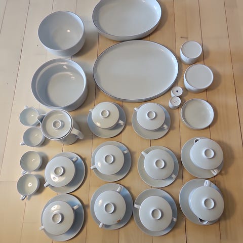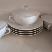 Royal Copenhagen Blåkant bouillonskåle med låg hvid porcelæn