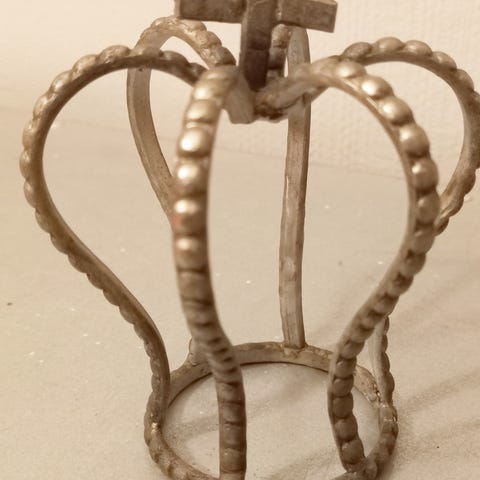 Smede jerns krone i sort metal. Kronen er udført i buede metalbånd med en liljeformet top og er egnet som indendørs eller udendørs pynt, for eksempel på bord, hylde eller i vindue. Velegnet til brug som enkel dekoration eller som holder til mindre genstande efter eget valg.