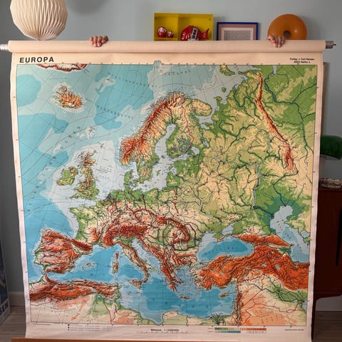 Europa vægkort fra gammel folkeskole. Slidt men stadig utrolig flot og retro.