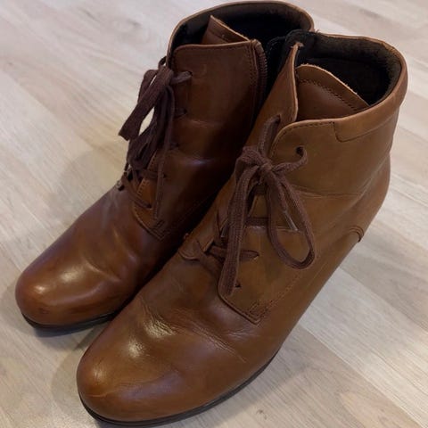 Har fået et ekstra og slidstærkt gummilag på hælen hos en skomager