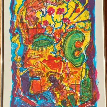 Litografi, Ann Makander, motiv: ”Rød himmel”.