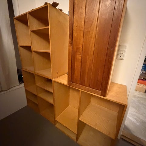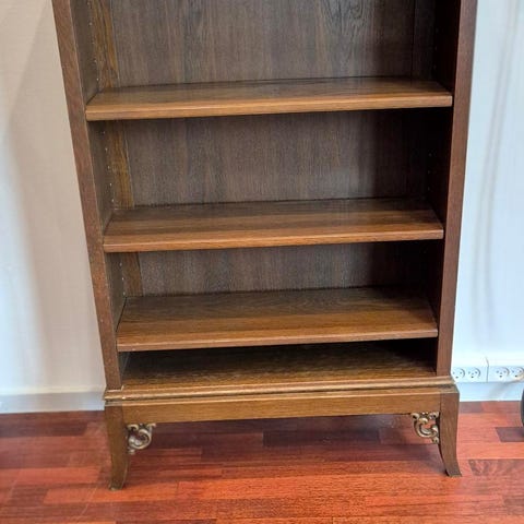 En gammel, aflang reol købt i Antik Pjot sælges (i det første billede ser man den på højkant). Vi har brugt den til cd afspiller og opbevaring af cd'er/dvd'er, og derfor er der huller til ledninger. Men dem ser man ikke, når man har stillet bøger inde. Den er 20cm i dybden og derfor god for små bøger. Det er svært at se det på billedet, men faktisk en pæn reol, hvis man kan lide stilen. Skal afhentes i Espergærde.