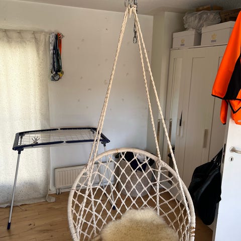 Hængestol i kurveflet, incl pudeindsats