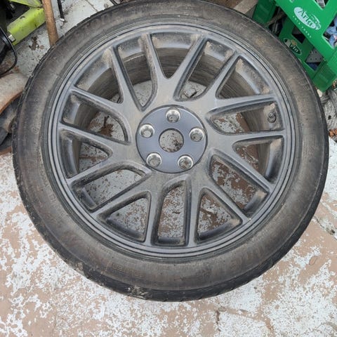 Tesla model 3 Aero alufælge med hjulkapsler. Dæk monteret på fælge juni 24.