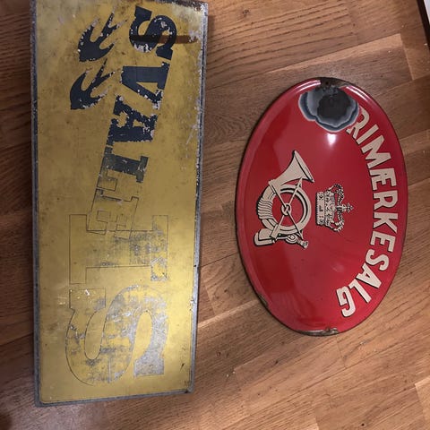 Gammeldags emalje drueta skilt