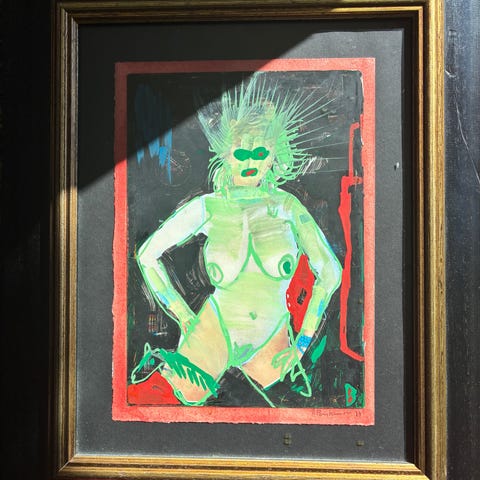 Maleri i akryl på lærred. Maleriet er signeret på forsiden og bagsiden med titel og årstal 2005. Kunstner Betina Jung. Mål: 80x150