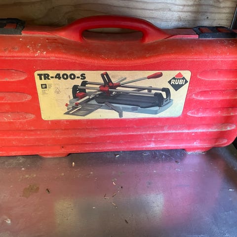 Rubi TX-700 fliseskærer i rød plastkuffert.