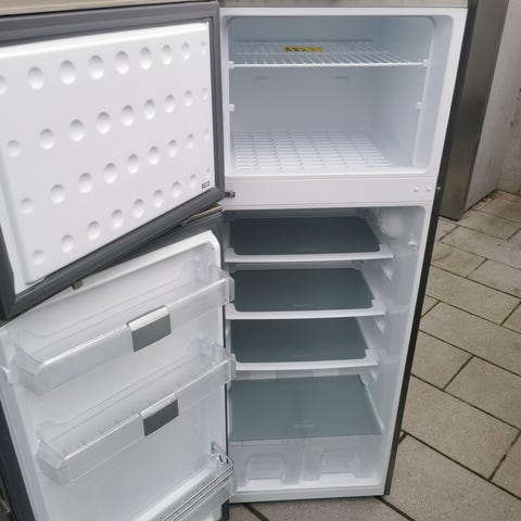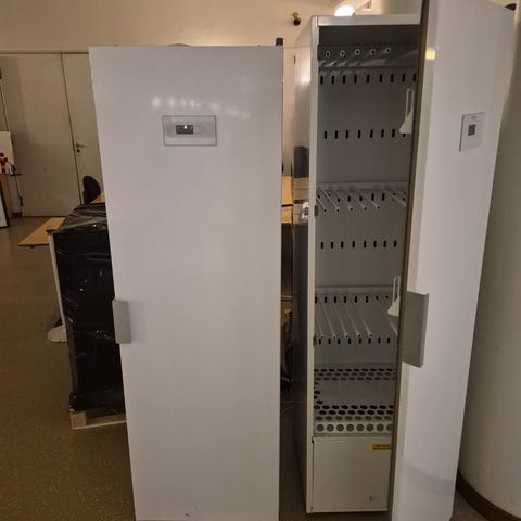 Electrolux ERE3500X/ELF2500X køle-fryseskab i stål. Sættet består af et køleskab og et fryseskab i fuld højde med elektronisk betjening i toppen af døren. Køleskabet har en nettovolumen på 335 liter, og fryseskabet har en nettovolumen på 212 liter. Begge skabe er fritstående og udført i rustfrit look med vertikale håndtag på fronten. Temperaturindstilling og -visning sker via digitale knapper og display. Køleskabet er mærket med model ERE3500X, og fryseskabet er mærket med model ELF2500X. Begge enheder er fremstillet i Sverige og anvender kølemidlet R600a (pentan). Velegnet til brug i køkken, bryggers eller andre rum, hvor der er behov for separat køl og frys med stor kapacitet.