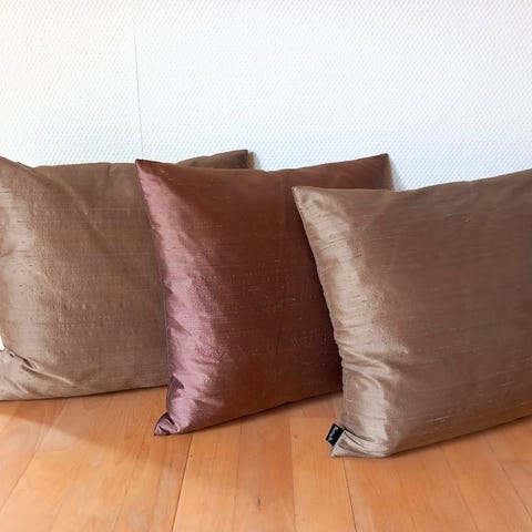Blandede puder sælges. Stof: Velour, ruskind, hør mm. Farver: orange, camel, beige og petroleum. Købt i både dyre boligbutikker og Ilva. Afhentes i Holte.