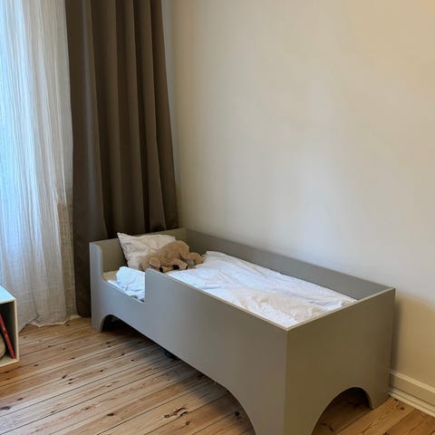 Juniorseng fra Sanders malet med Zoffany Paint i farven “Raw Umber”. Inkl. madras som er brugt meget lidt af et enkelt barn. Har også 2 stk stræklagner som passer til. Længde 160 cm og bredde 90 cm.