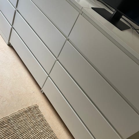 IKEA kommode med 3 skuffer i hvid. Kommoden har glatte fronter uden greb og en plan topplade, der kan bruges til opbevaring eller dekoration. Egnet til soveværelse, stue eller entré til opbevaring af tøj, tekstiler eller andre genstande.