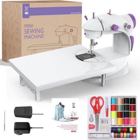 Denne Shimmer 'n Sparkle "Sew Crazy" symaskine er designet specielt til børn. Den er brugervenlig, sikker (med beskyttelse omkring nålen) og kommer med alt, hvad man skal bruge for at kaste sig over de første kreative projekter.