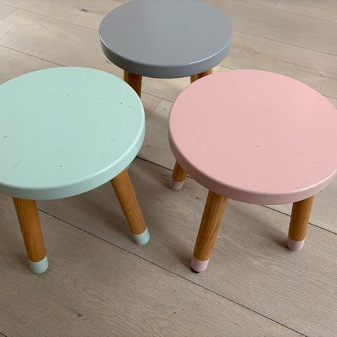 IKEA børneskammel i hvid. Rund siddeflade med tre ben, velegnet til børn som ekstra siddeplads ved bord, i legeværelse eller andre rum. Fremstillet i robust plastmateriale, der er let at rengøre og flytte rundt på for både børn og voksne. Prisen er for 2 stk.