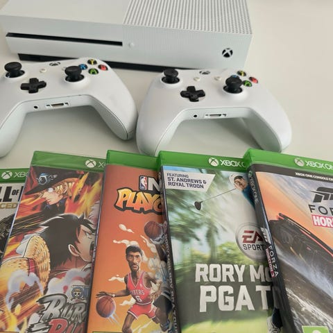 Microsoft Xbox One X konsol. Med to trådløse Xbox-controllere i sort. Alt virker som det skal, begge controllere er slidte men virker fint. Harddisken er på 1 TB, der medfølger hdmi kabel samt strømstik. Der er Fifa 19 og Batman, Dark Asylum med. Skriv endelig for spørgsmål, kan afhentes i Nørresundby eller sendes forsvarligt som pakke.