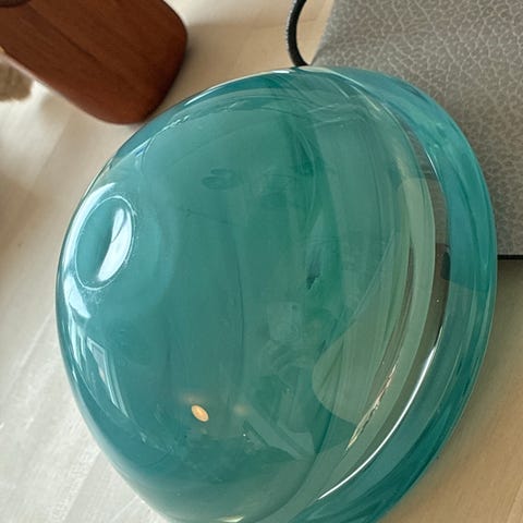 Den store lyseblå måler 17 cm I diameter og 7 cm i højden.
