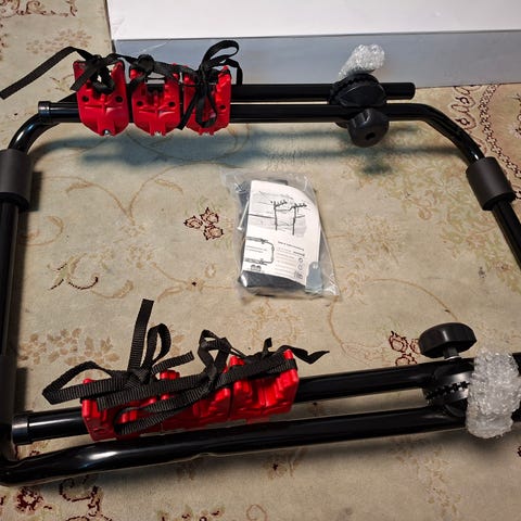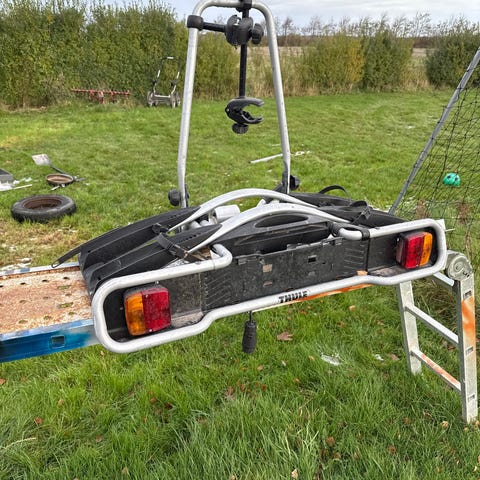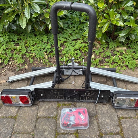 Cykelholder med plads til 2 cykler. Med tilhørende nummerpladeholder med integreret lygtebom.