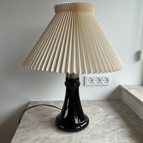 Anden bordlampe, Helios Holmegaard, Smuk hvid Helios (mellem) glaslampe fra Holmegaard med trådskærm lavet i bomuld.