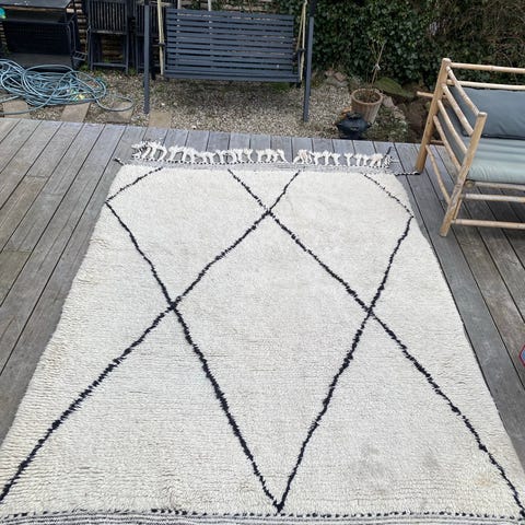 Fantastisk marrokansk tæppe i 100% uld. Rigtig flot stand. Fra dyre- røg- og lugtfrit hjem. 230 x 160 cm. Kan hentes i nordvest på 2. Sal.