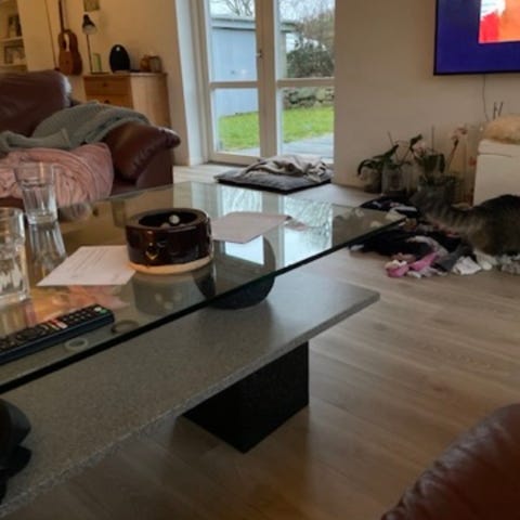 Glas sofabord med granit