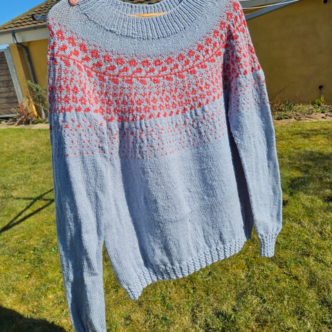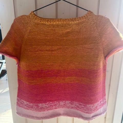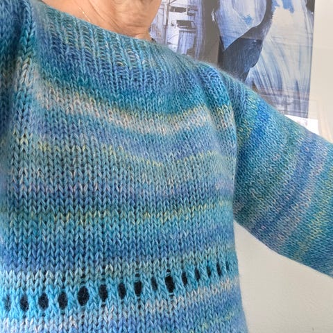 Hjemmestrikket bluse i turkis håndfarvet merino uld og mohair / silke