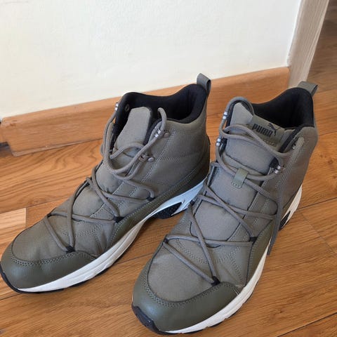 Rugged Gear Light Explore Forrest sneakers in size 43. High-top model with lace-up closure. Padded shaft and tongue for extra comfort. Light-colored midsole with structured surface and outsole with pattern for better grip. Suitable as everyday shoes or for light outdoor use.