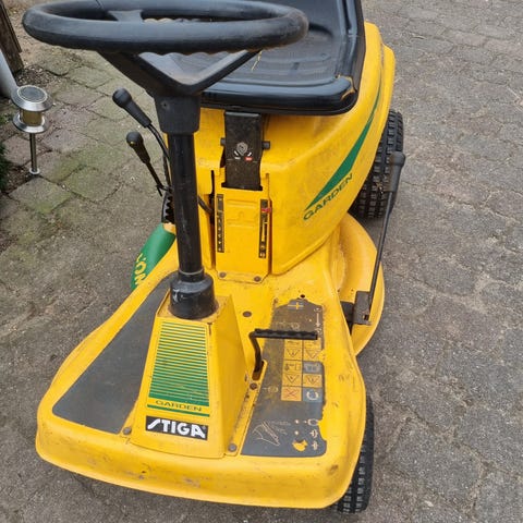 Stiga Villa Senator havetraktor med Briggs & Stratton 12,5 HK benzinmotor. Traktoren har frontmonteret klippebord, manuel gear. Der skal ny rem på til klippebord. Den startede i første hug efter vinterpausen. Befinder sig i 9981 ved vores sommerhus.