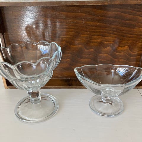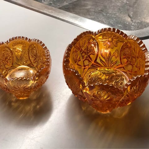 2 stk røgfarvede glasskåle med blomsterslibning i bunden. Ø:13