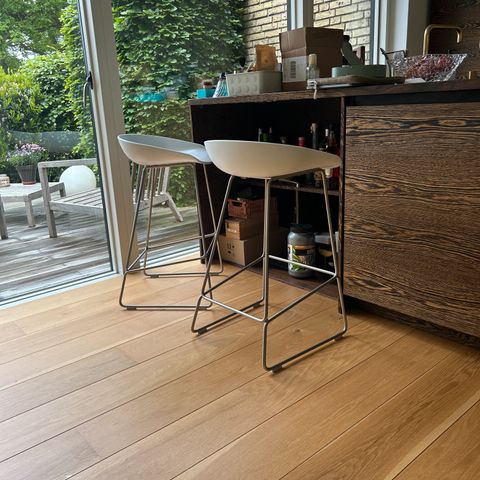 2 stk. smukke barstole inkl. sæde hynde, About a Stool AAS 38, i About a chair serien. Stolen er utroligt dejlig at sidde. Barstolen passer til en køkken ø.