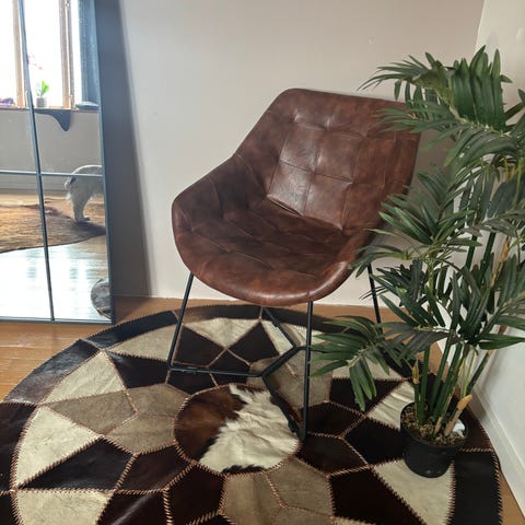 Sælger denne her flotte stol grundet flytning. Mærke ukendt, så det kan jeg ikke svare på.