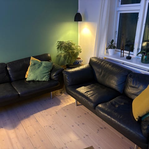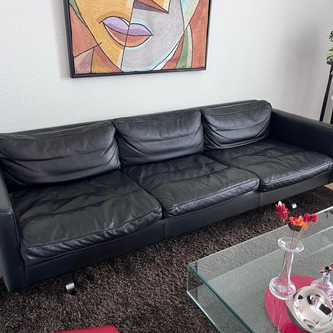 3-personers sofa i sort læder. Model HJM Kappa 8907.