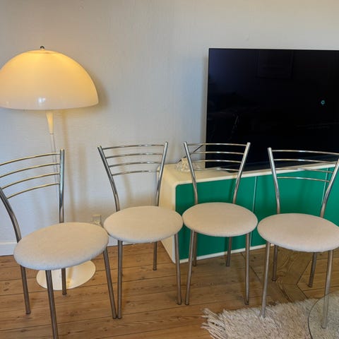 4 stk unikke grå spisebordsstole.