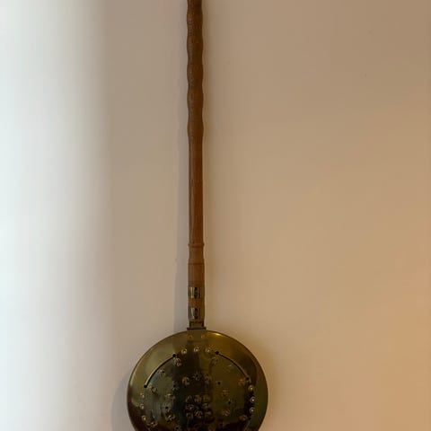 Antik sengevarmer messing med træskaft