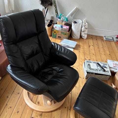 Helt ny Jysk HUNDSLUND lænestol med fodskammel✨. Har aldrig været brugt og blot stået i et andet rum.