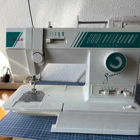 Singer symaskine i ok stand, dog lidt problemer når den skal sy baglæns.