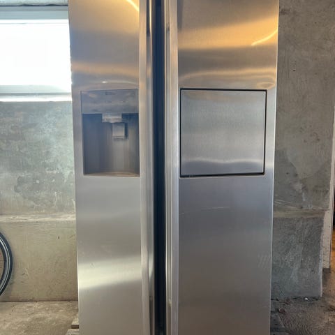 Samsung side-by-side køleskab med fryser og isdispenser i stål