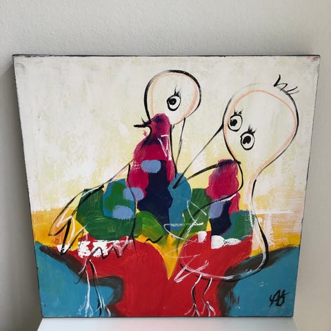 Oliemaleri på lærred maleri 50 x 50 cm grøn flerfarvet