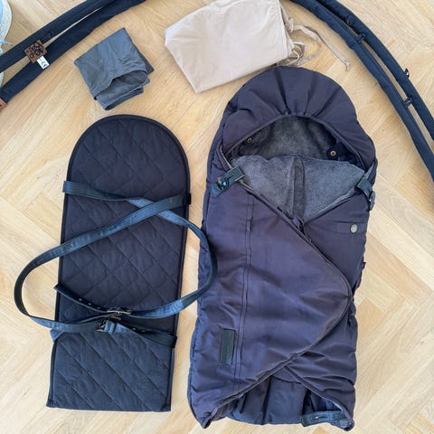 Sleepbag kørepose blå med beige fór