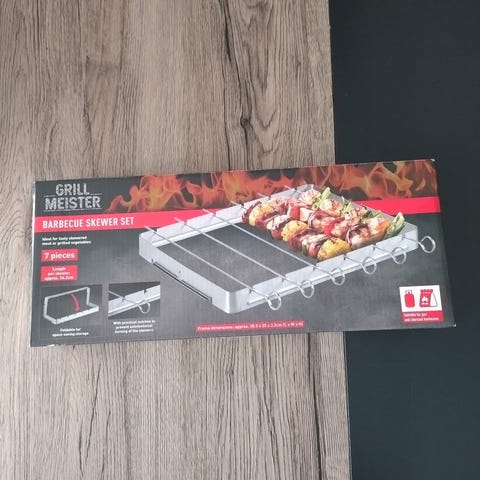 MN 8102 grillspyd med elektrisk motor til grill. Sættet indeholder ét spyd, en A/C elmotor, to fire-grens kødgafler samt monteringsbeslag. Velegnet til tilberedning af f.eks. kylling og andet kød på rotisseri over grillen.