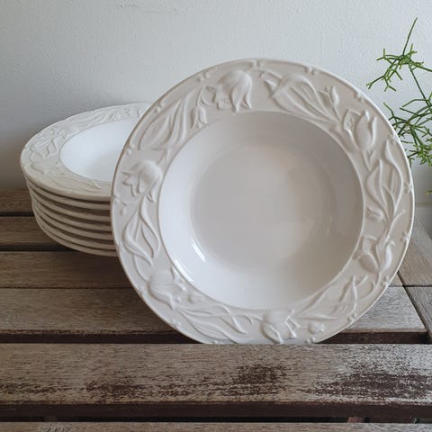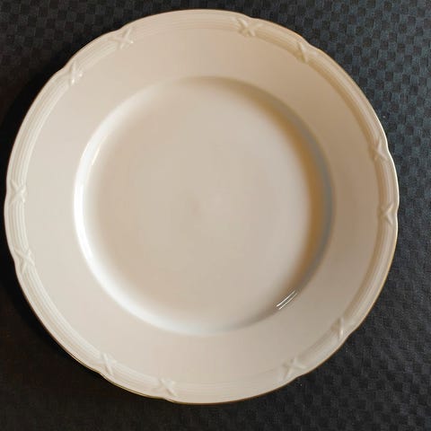 Har to meget små afslag ved kanten, som ikke er synlige, når fadet er i brug.