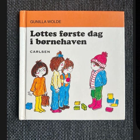 Carlsen Lottes første dag i børnehaven børnebog. Billedbog for børn om Lottes første dag i børnehaven med illustrationer i farver. Velegnet til højtlæsning og samtale om børns hverdag i institution.