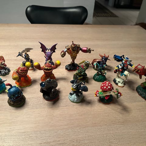 Skylanders og Infinity figurer og spil sæt. Samling af flere 90 figurer i forskellige udgaver samt enkelte spil og portaler, som kan bruges sammen med kompatible konsoller og Skylanders-spil. Egnet til brugere, der ønsker ekstra figurer til deres eksisterende Skylanders og/eller Infinity samling eller til udskiftning af mistede figurer og tilbehør.