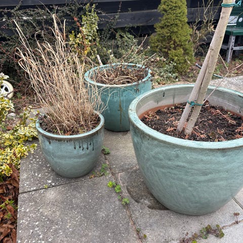 Flere krukker og plantekummer til udendørs brug
