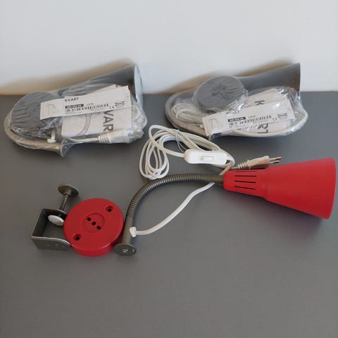 2 stk retro væglamper fra Ikea med flexarm. 1 rød og 1 sort.
