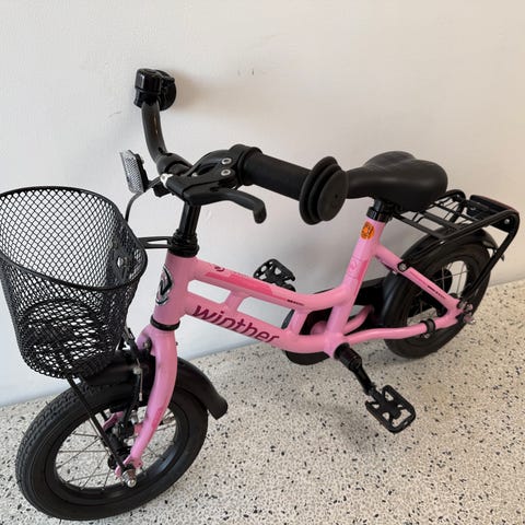 Sælger denne Winther 100 i 12” – passer til de mindste cyklister. Cyklen har kurv foran, bagagebærer, klokke, håndbremse samt fodbremse. Støttehjul medfølger.