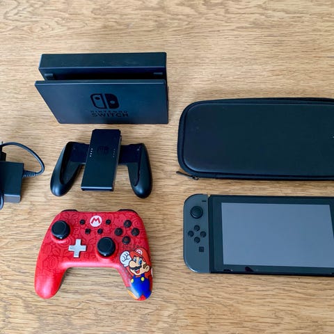 Der er en lille ridse nederst på skærmen i midten. Den venstre Joycon kan drifte. Derfor har jeg købt procontrolleren, der medfølger, som jeg også syntes var rare at holde på.