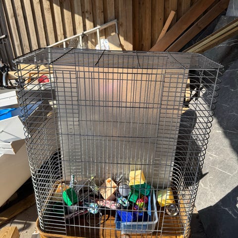 Medfølger bur samt foder, så de er klar til nyt hjem.