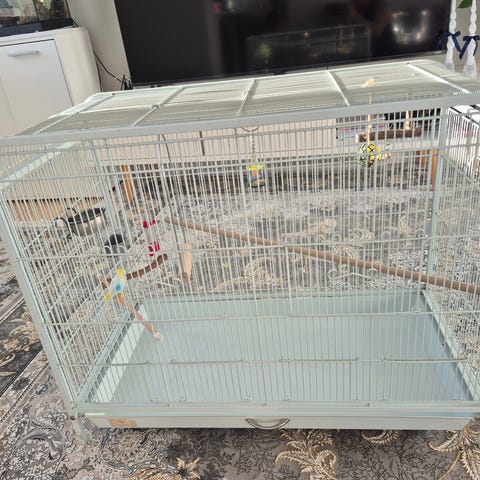 To papegøjer med bur sælges
