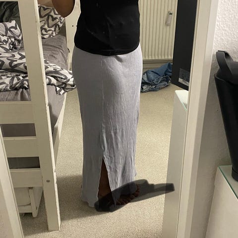 Nederdelen er lyserød og fremstillet i bomuld. Modellen er kort og har bæltestropper samt tilhørende bælte med rund spænde i samme materiale og farve. Velegnet til hverdagsbrug eller mere pæne anledninger afhængigt af styling.