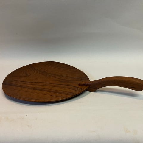 Materiale: Teaktræ (ofte endetræ) med en stålkniv, der fungerer som håndtag.