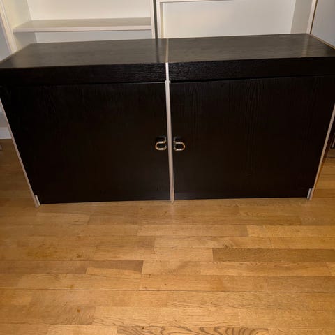 Denne modul består af to skabsmoduler med hylder samt et skuffemodul. De er sammensat til en modul.